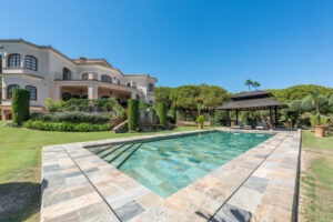 A superb villa built on an elevated site with outstanding panoramic views over golf courses to mountains and the sea.