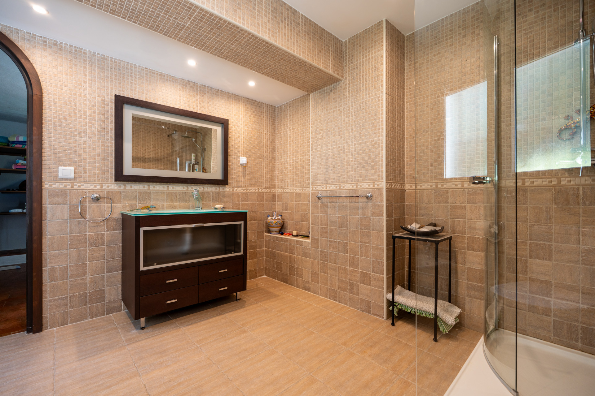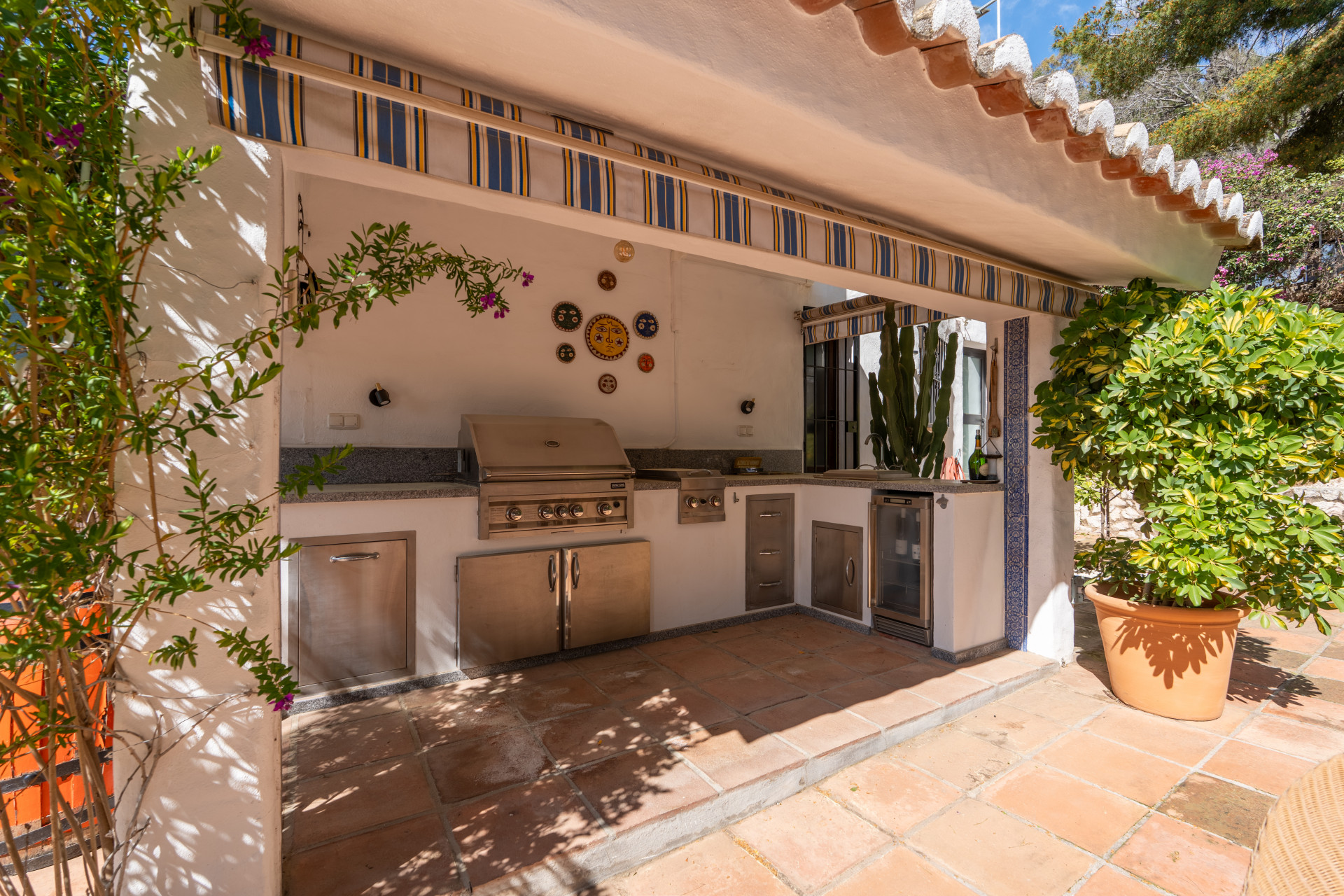 The villa features 4 spacious bedrooms, all with en-suite bathrooms, including a separate guest casita, ideal for visitors or staff accommodation.