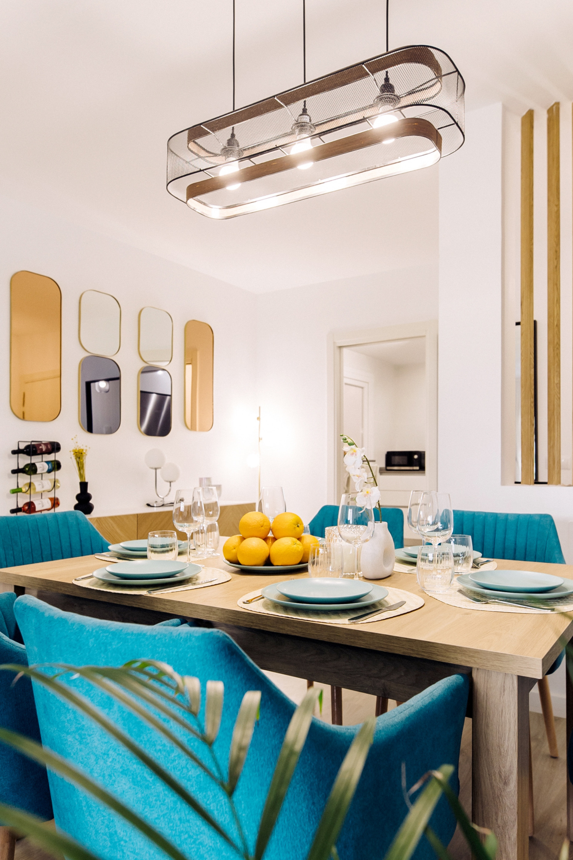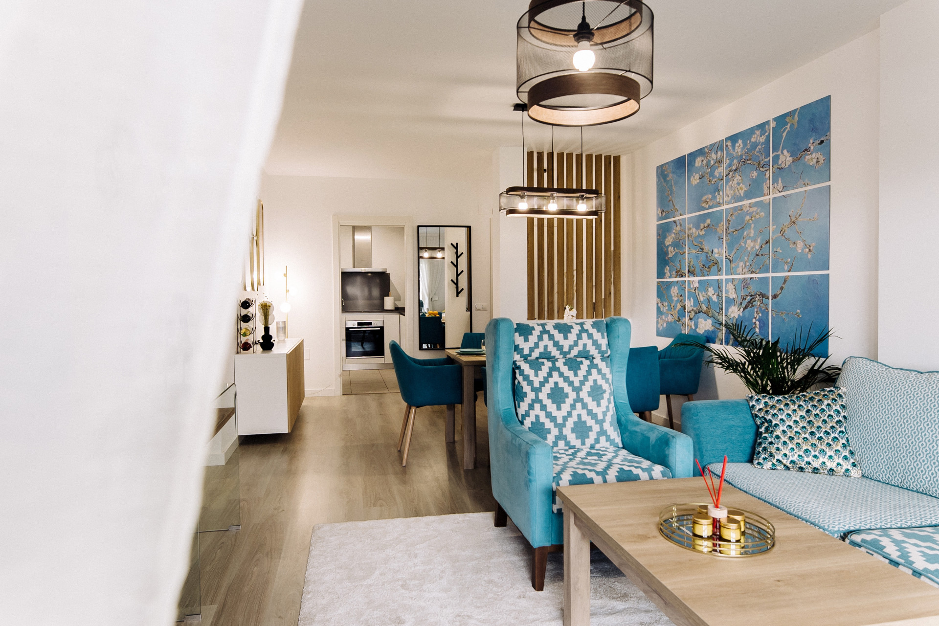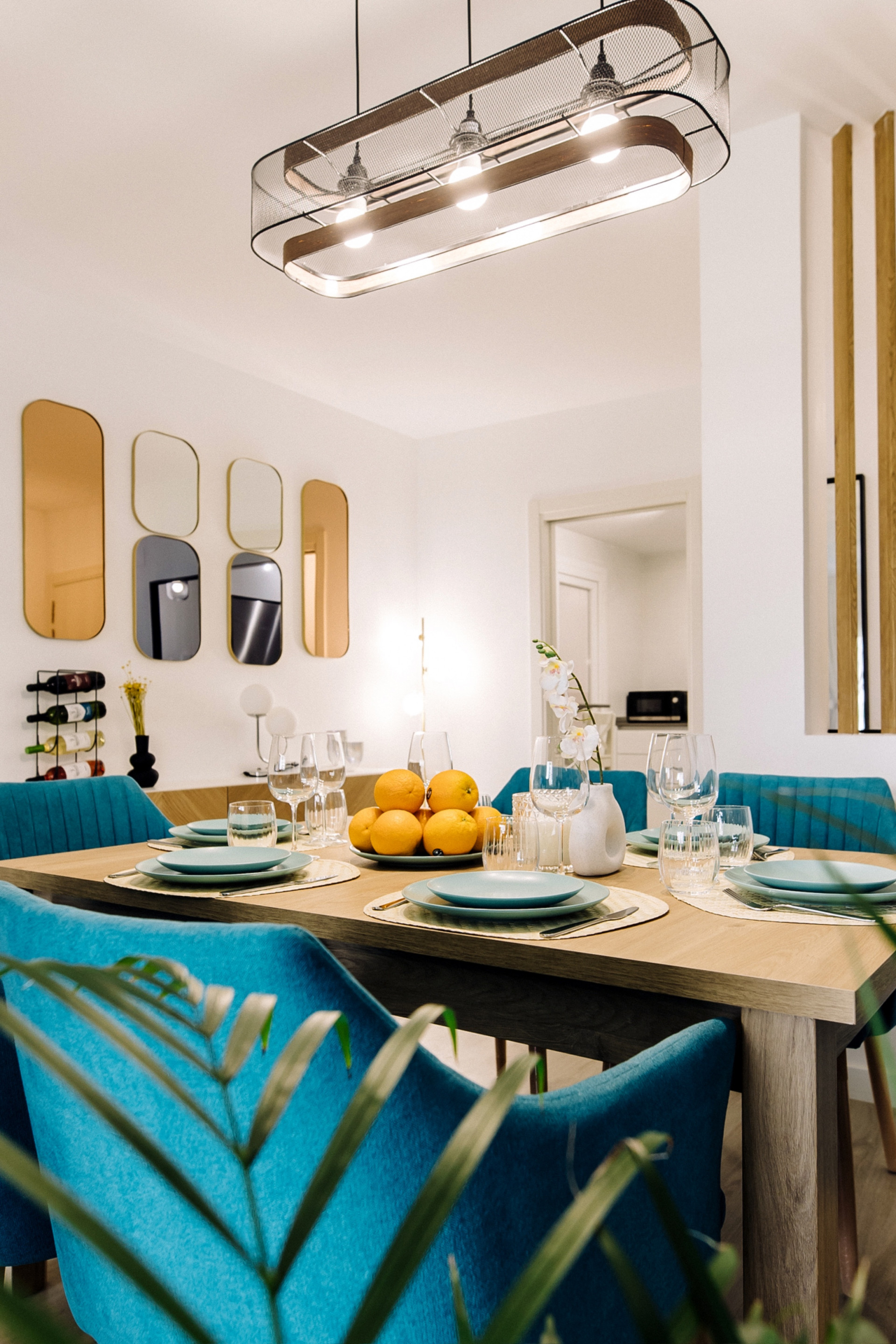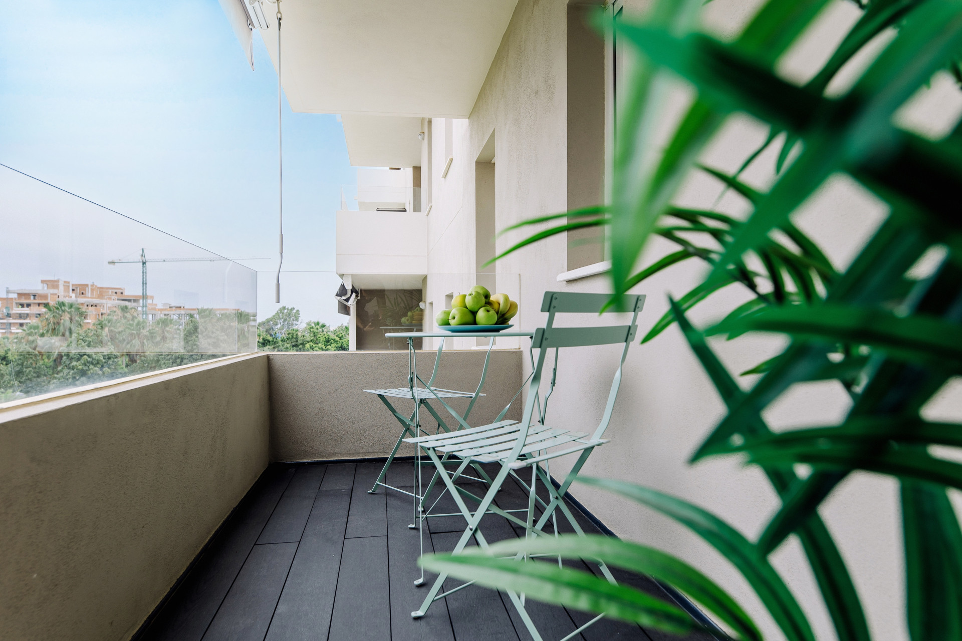 Spanning a generous 90 square metres, the apartment’s thoughtfully designed interior includes a bright and airy living room, a formal dining area, and a fully fitted kitchen equipped with modern appliances, perfect for both daily meals and entertaining. Parquet floors add a touch of elegance to the living spaces, enhanced by large glass doors that lead to a covered terrace. From here, residents can enjoy tranquil garden views, a perfect setting to unwind with a morning coffee or an evening glass of wine while using the high-speed fibre optic internet connection for streaming or work.