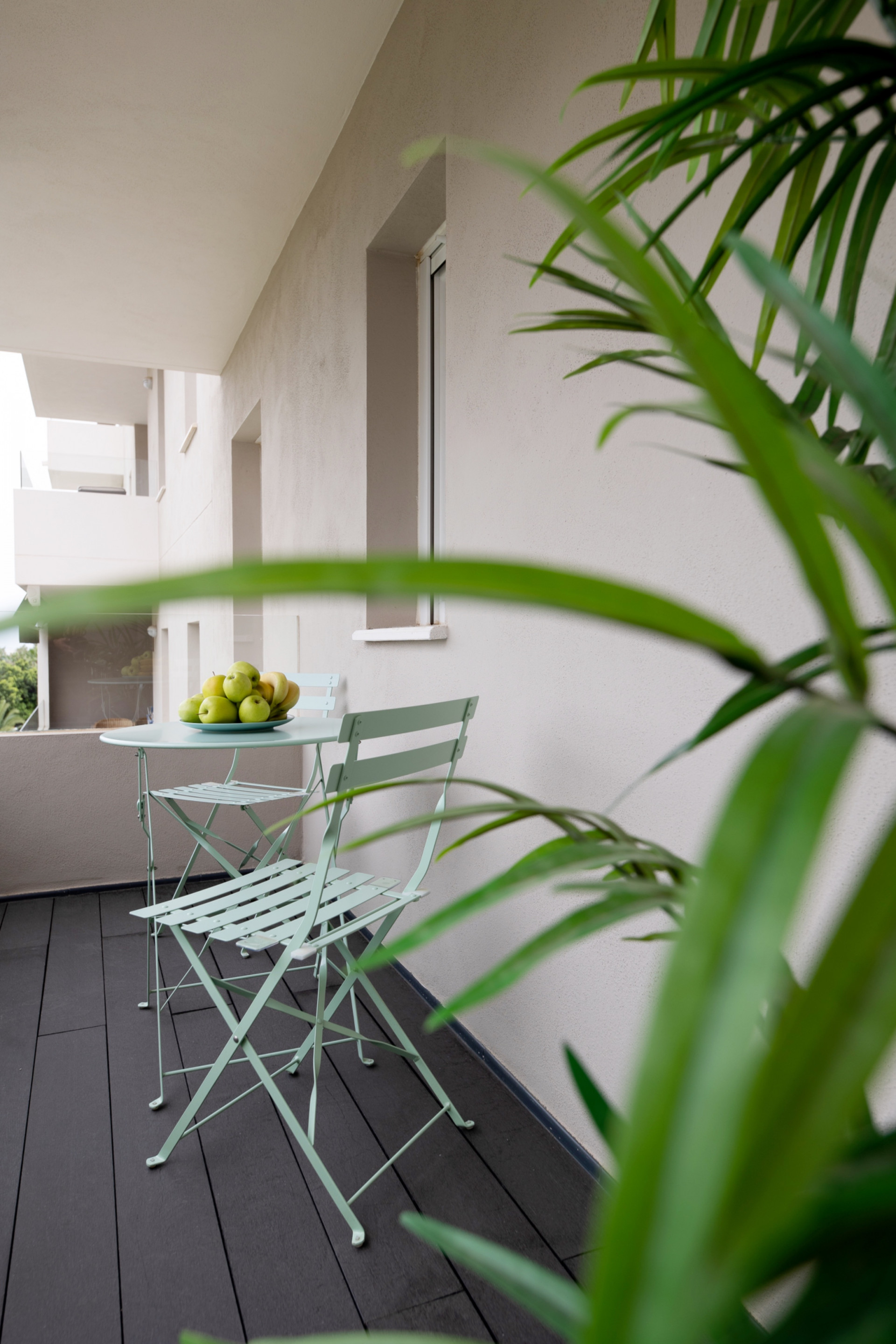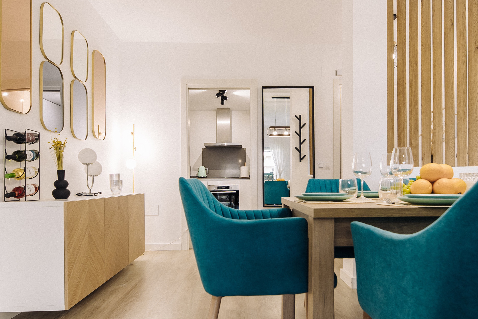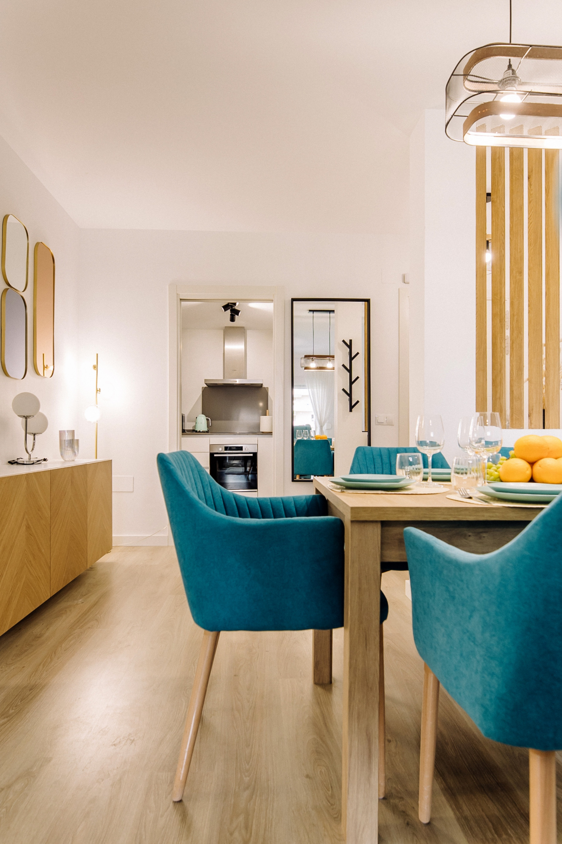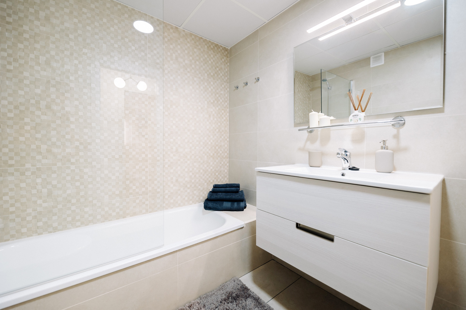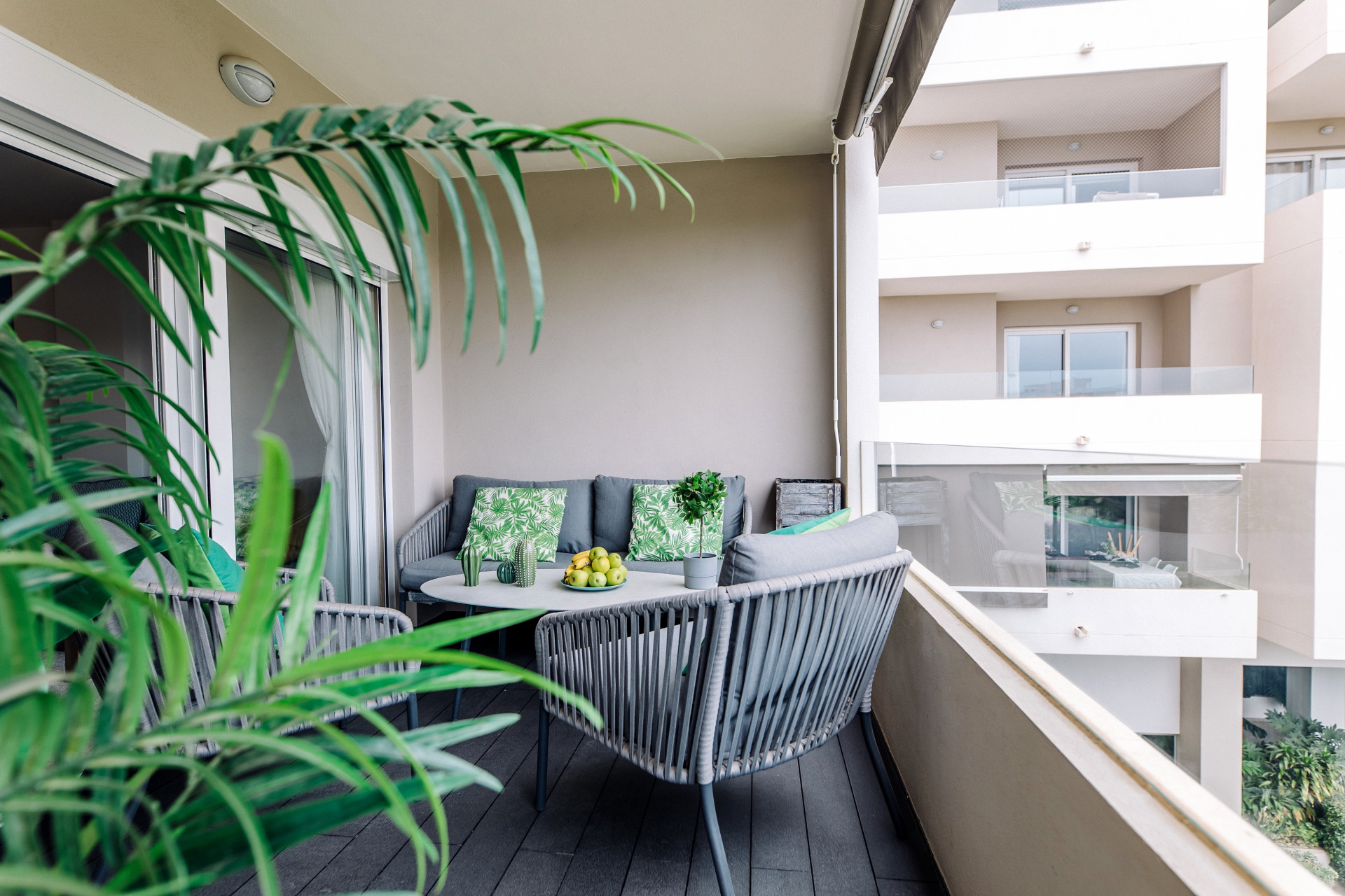 Spanning a generous 90 square metres, the apartment’s thoughtfully designed interior includes a bright and airy living room, a formal dining area, and a fully fitted kitchen equipped with modern appliances, perfect for both daily meals and entertaining. Parquet floors add a touch of elegance to the living spaces, enhanced by large glass doors that lead to a covered terrace. From here, residents can enjoy tranquil garden views, a perfect setting to unwind with a morning coffee or an evening glass of wine while using the high-speed fibre optic internet connection for streaming or work.