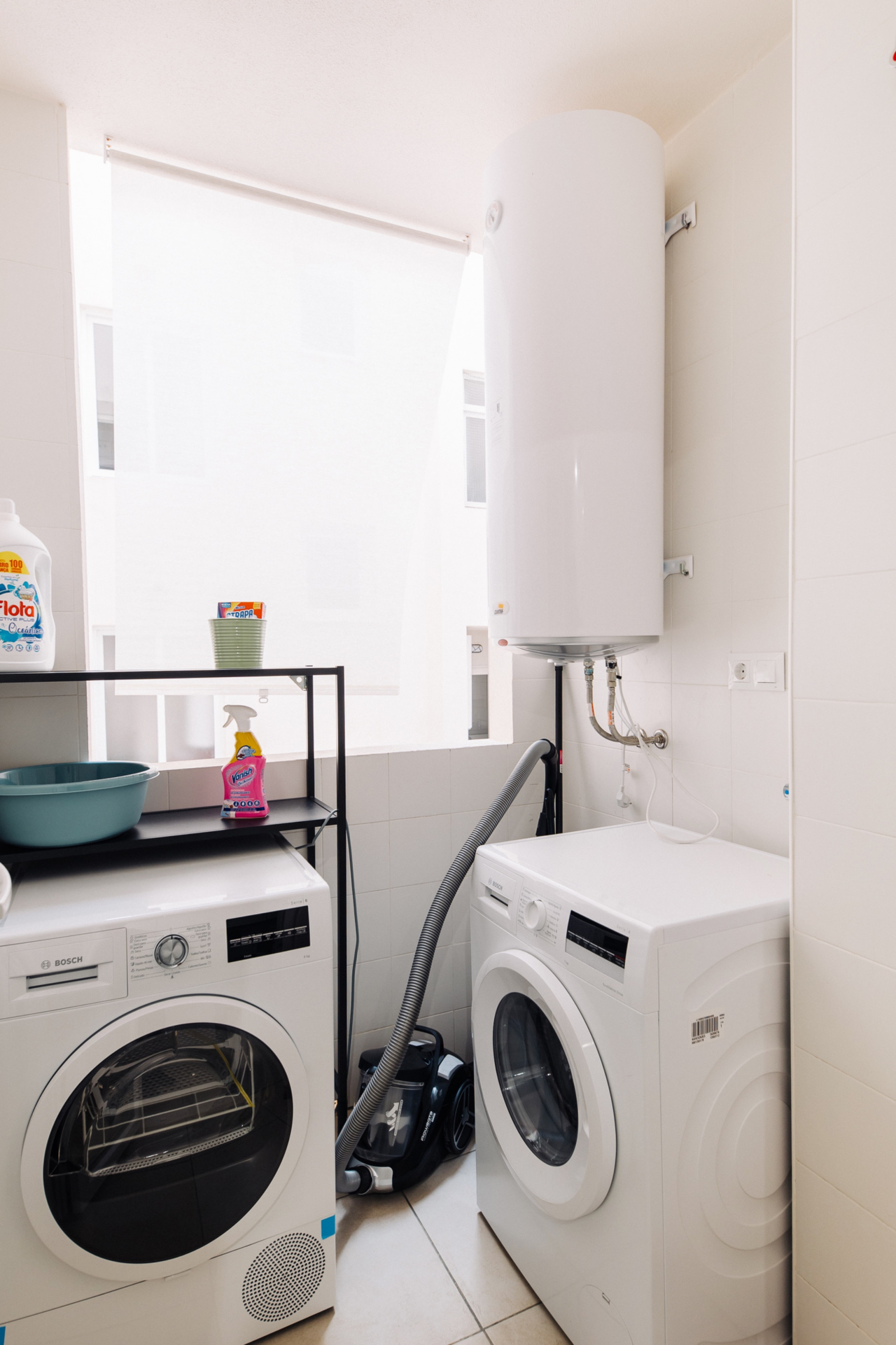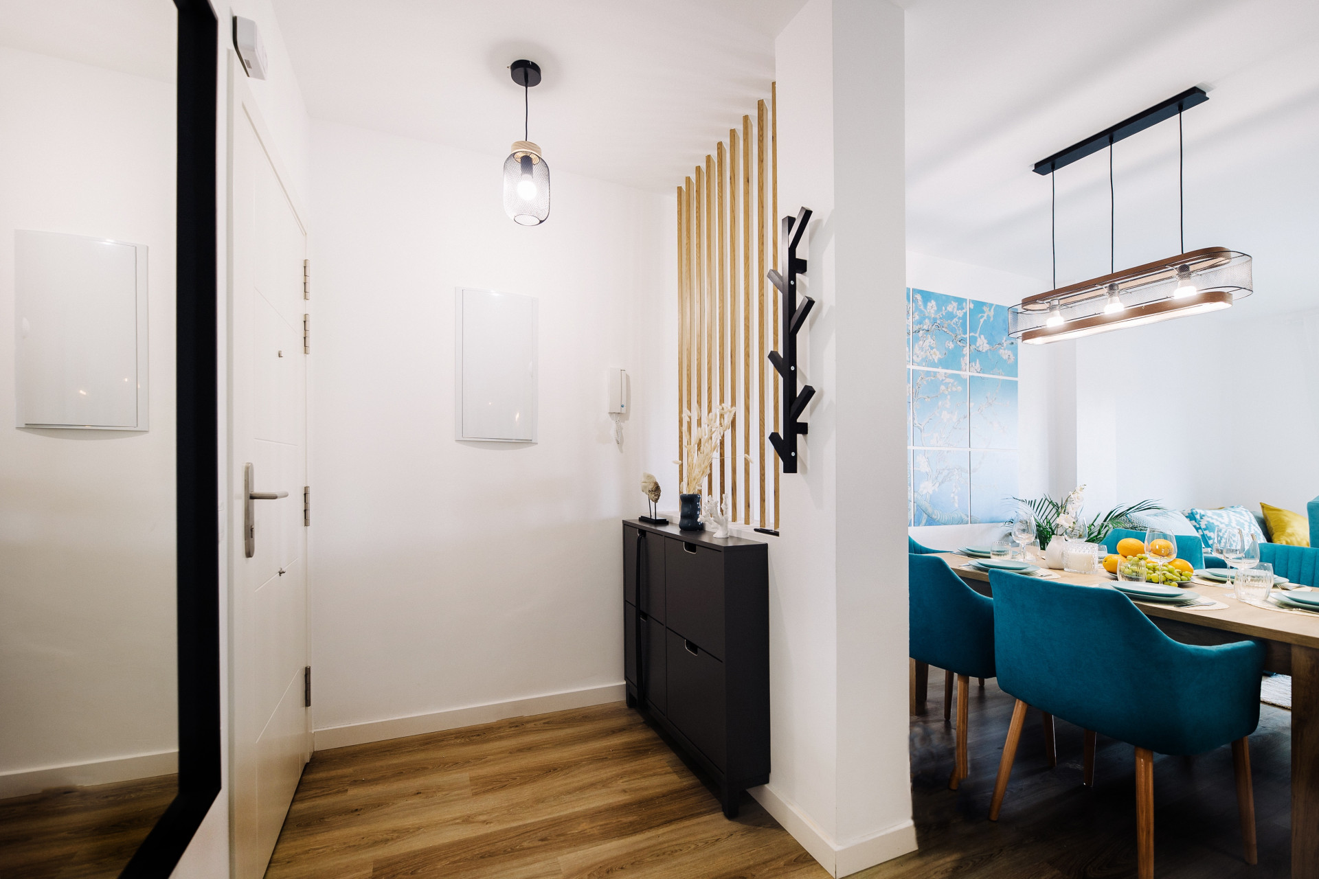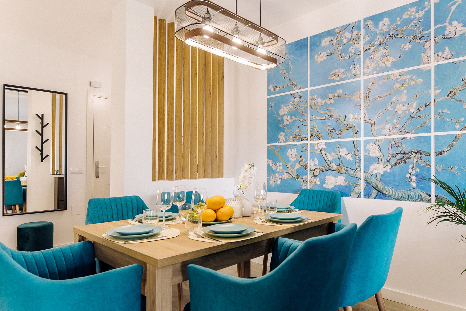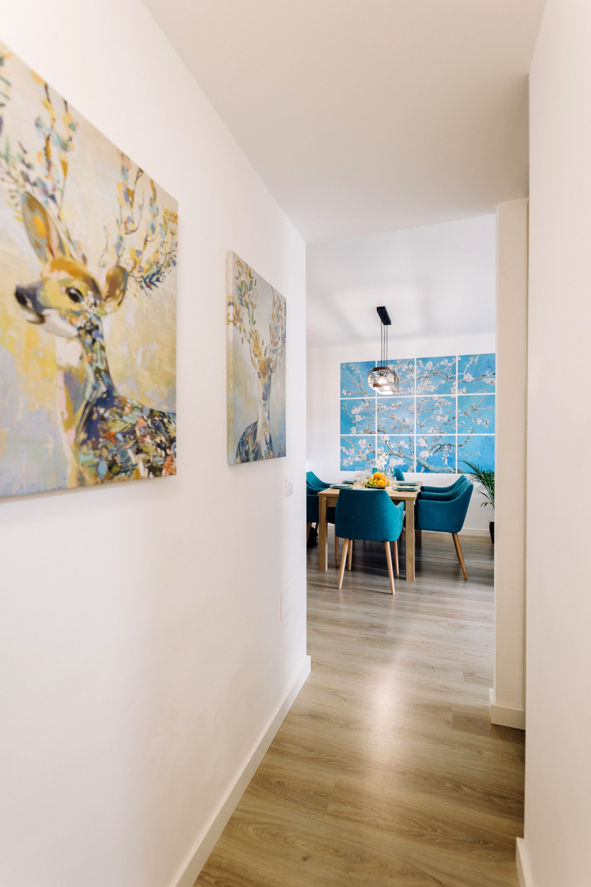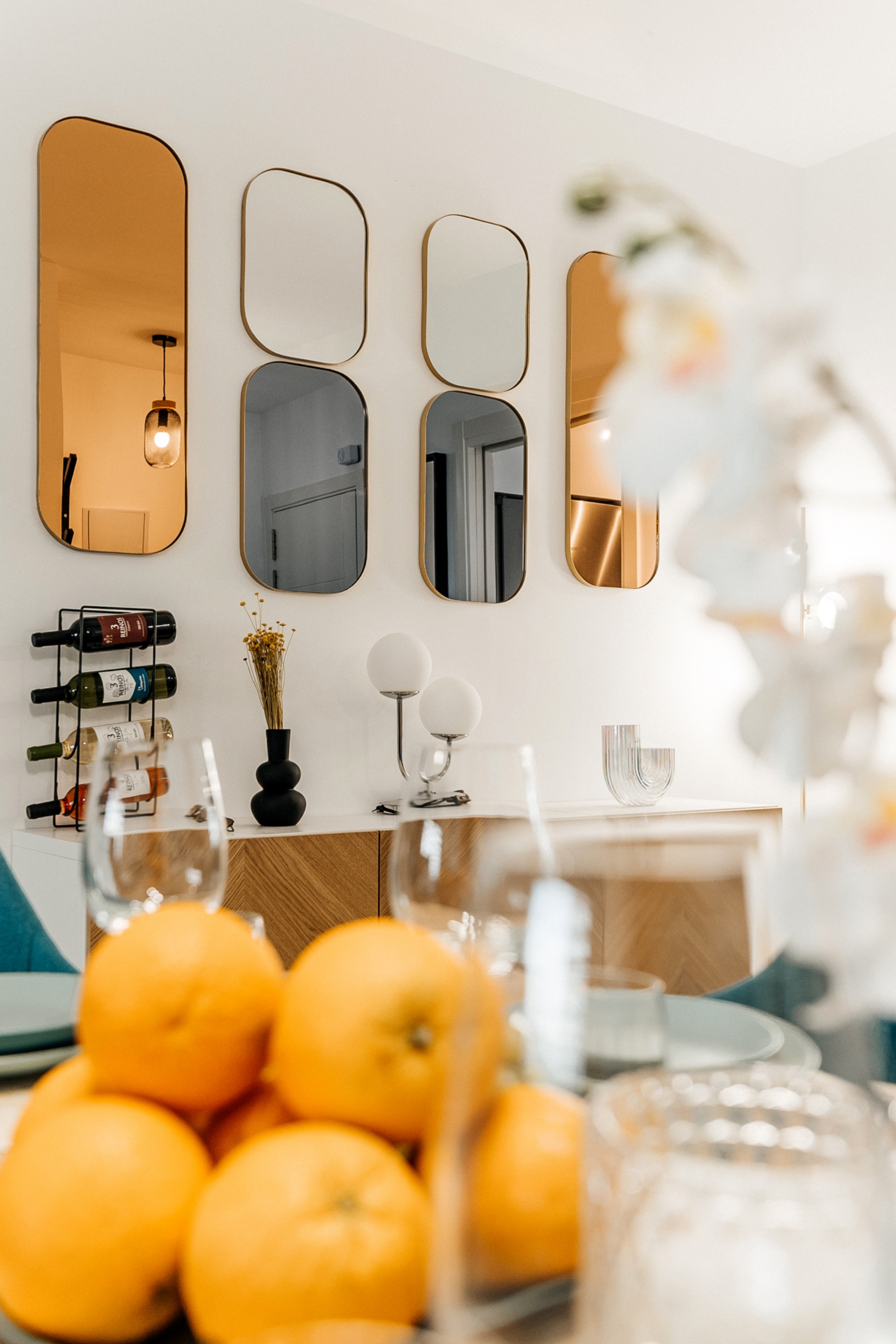 Spanning a generous 90 square metres, the apartment’s thoughtfully designed interior includes a bright and airy living room, a formal dining area, and a fully fitted kitchen equipped with modern appliances, perfect for both daily meals and entertaining. Parquet floors add a touch of elegance to the living spaces, enhanced by large glass doors that lead to a covered terrace. From here, residents can enjoy tranquil garden views, a perfect setting to unwind with a morning coffee or an evening glass of wine while using the high-speed fibre optic internet connection for streaming or work.