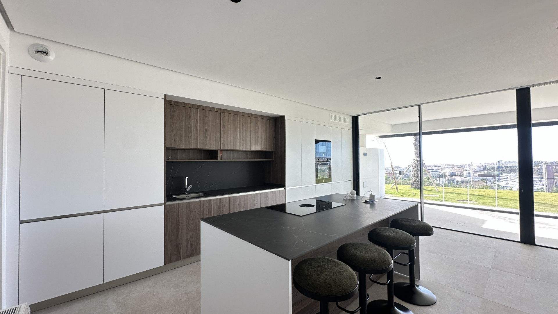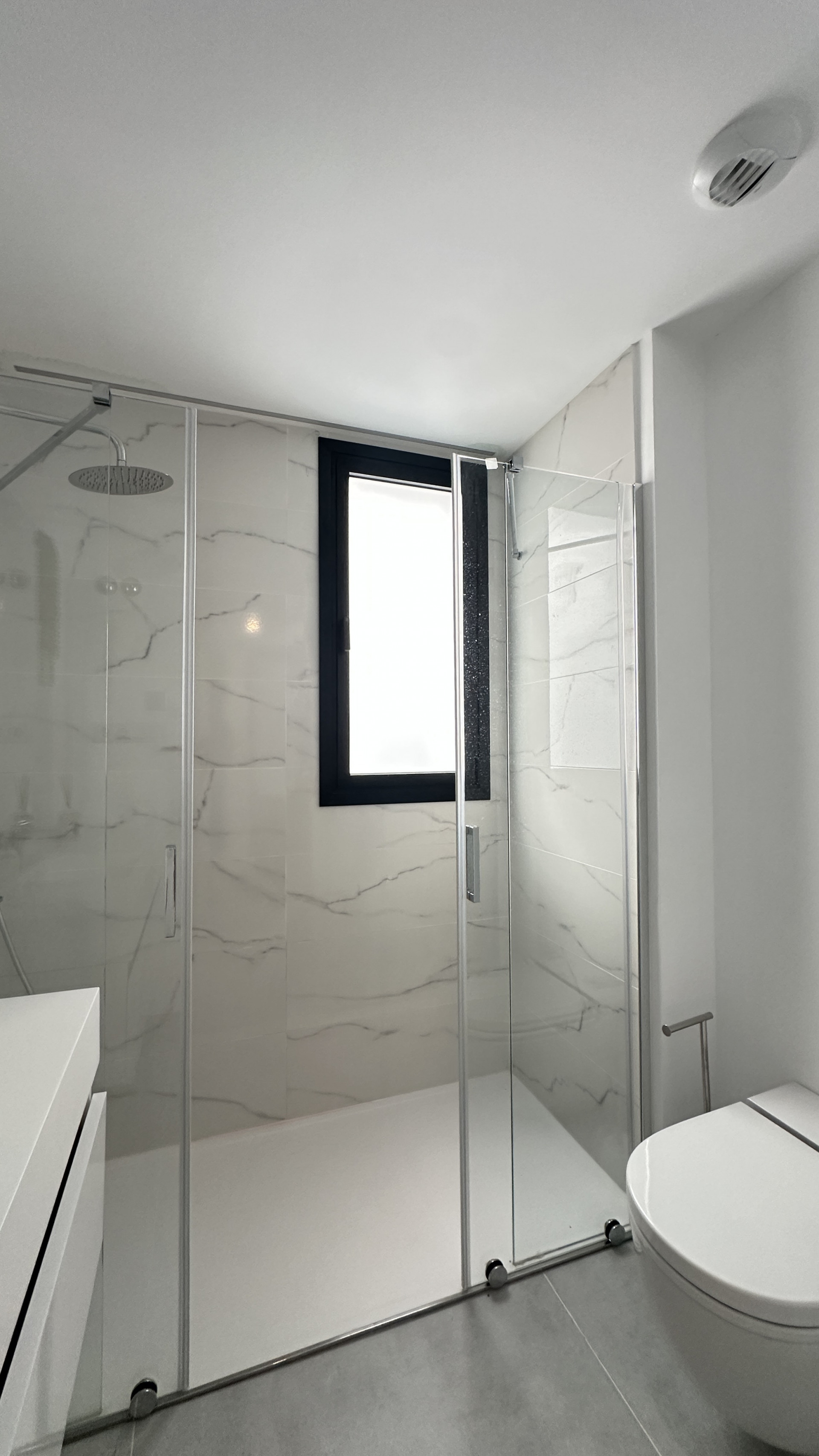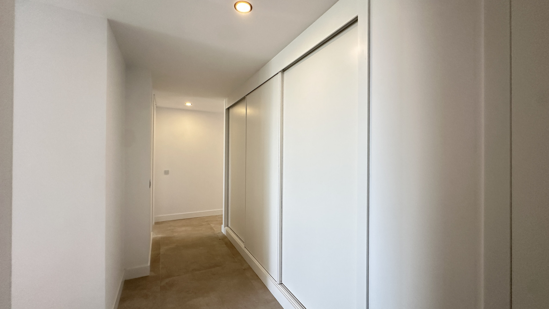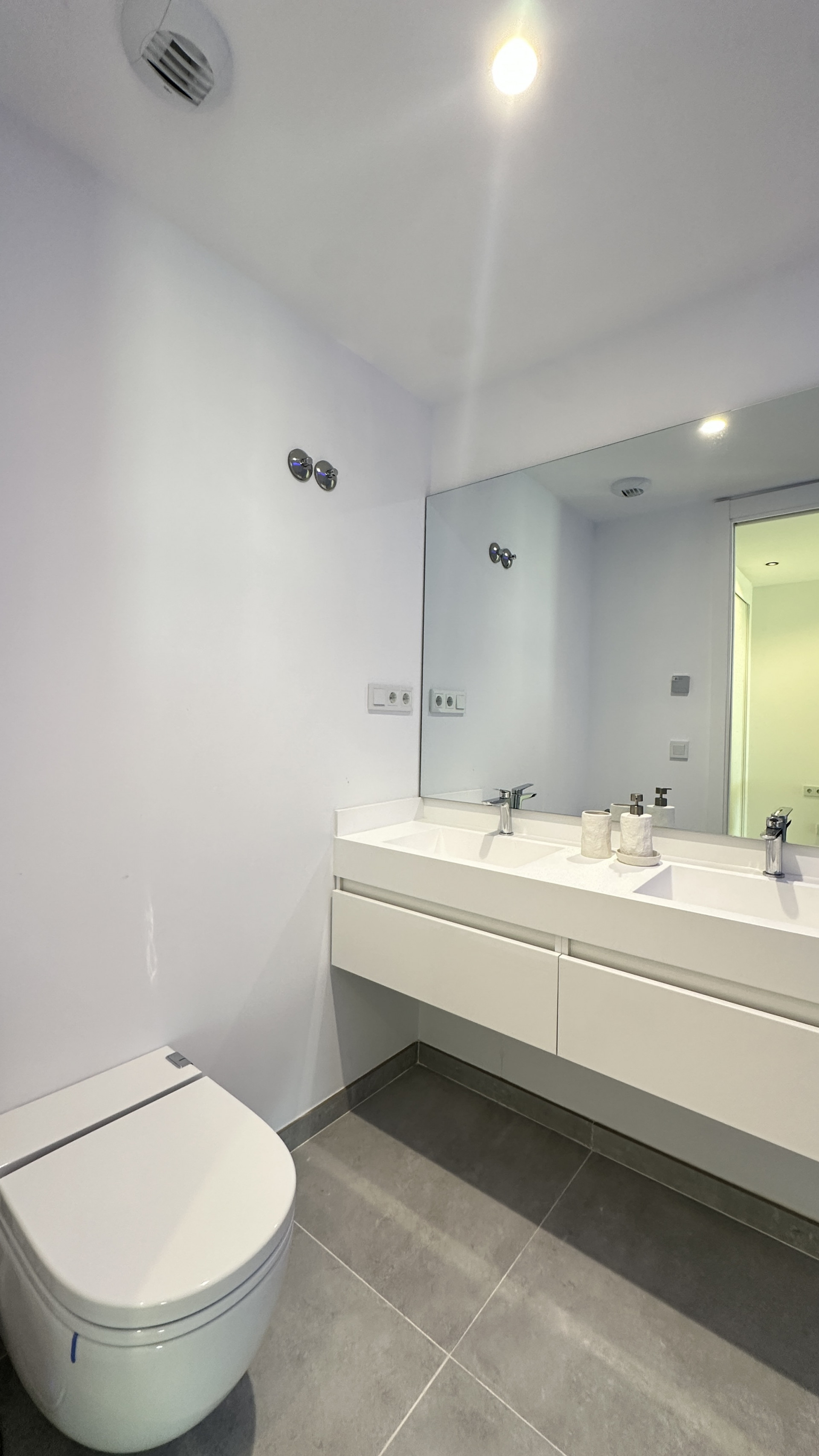 Spanning a generous 149.92m², the apartment features four spacious bedrooms and three stylish bathrooms, including one en-suite. The property is presented in excellent condition, with an open plan kitchen that is both fully fitted and equipped, alongside a dining room and living area that flow seamlessly onto a large private and covered terrace. Large glass doors, combined with double glazing and panoramic windows, ensure sweeping sea and mountain views from many vantage points in the home. High quality Gres floors, underfloor heating throughout, fitted wardrobes, and a walk-in closet add practical convenience and comfort, while security shutters, an armored door, and surveillance cameras provide peace of mind.