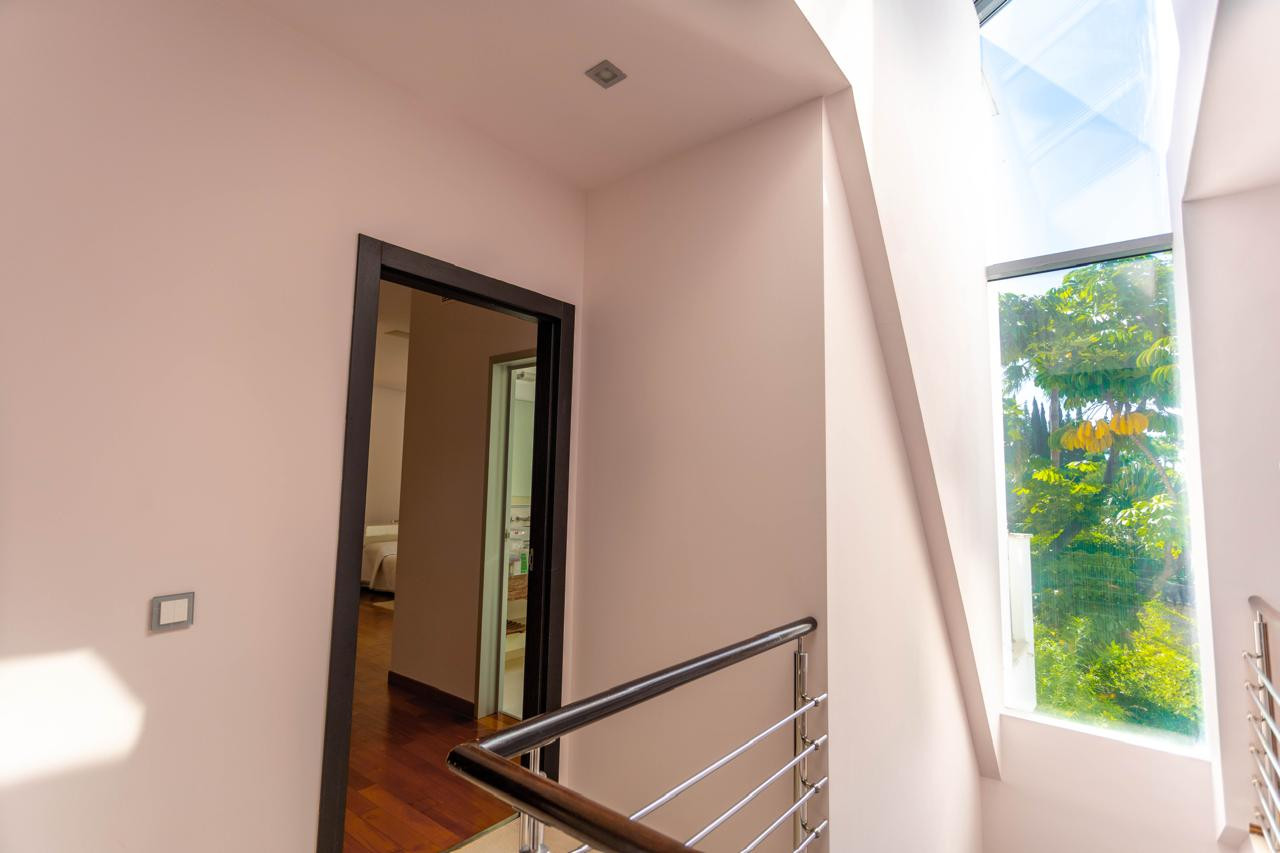 Built in 2012 and well maintained, the villa features 4 bedrooms, all with en-suite bathrooms, plus a guest toilet. The layout includes basement, ground floor, first floor, and a rooftop solarium. High ceilings, large windows, and underfloor heating throughout ensure comfort and natural light.