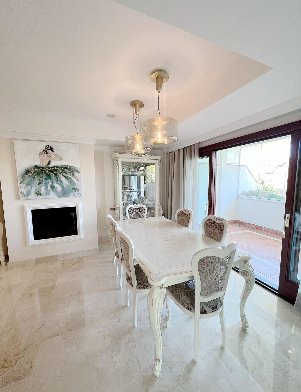 Apartmentin Marbella with 3 bedrooms, 3 bathrooms, 3 en suite bathrooms and with orientation south/east, with communal swimming pool, private garage (2 parking spaces) and communal garden. Regarding property dimensions, it has 283 m² built, 226 m² interior and 56 m² terrace. Has the following facilities amenities near, air conditioning, fireplace, marble floors, storage room, security entrance, double glazing, dining room, security service 24h, private terrace, kitchen equipped, living room, sea view, indoor pool, heated pool, laundry room, covered terrace, fitted wardrobes, gated community, lift, garden view, panoramic view, unfurnished, close to sea / beach, close to golf, excellent condition, close to port, close to schools, surveillance cameras, aerothermics and internet – fibre optic.