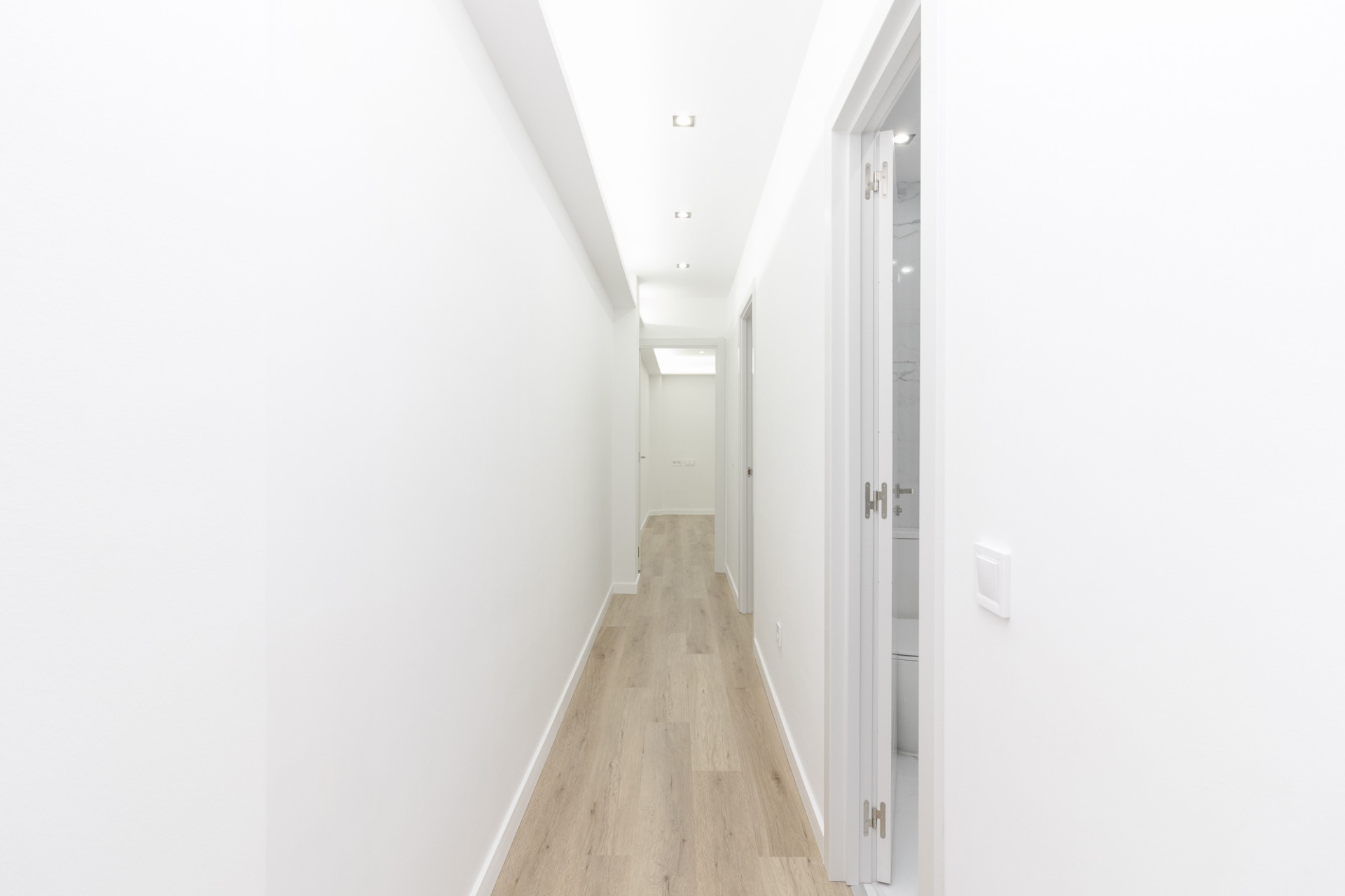 It has three bedrooms, all with built-in wardrobes, and a full bathroom. The apartment has been completely renovated, including new flooring and electrical wiring.