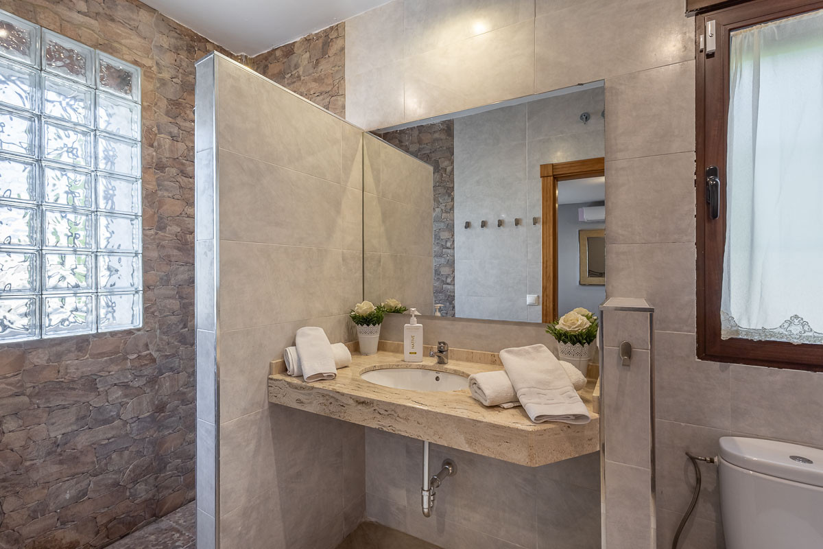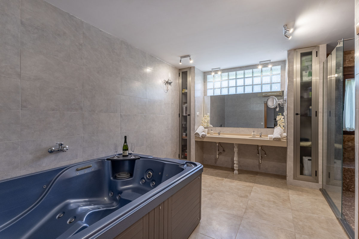 The main house has 225m2 of living space, distributed among 5 spacious exterior bedrooms, 3 magnificent bathrooms (the master bathroom features a jacuzzi and hydromassage), a separate kitchen, and a bright living room with a fireplace and direct access to the gardens and a large built-in pergola with a large table, perfect for enjoying cozy evenings outdoors. The house is in impeccable condition, maintaining the highest quality and comfort standards. Solar panels make this property a sustainable and independent option.