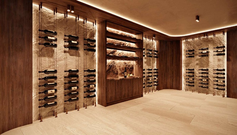 The private cinema room is specially designed for immersive movie nights in the comfort of your own home. The wine cellar provides a refined and functional space to store and showcase your favorite wines.