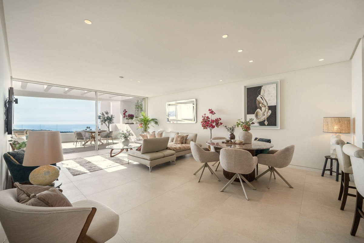Experience elevated living in this stunning duplex penthouse, perfectly positioned frontline golf and surrounded by lush greenery and mountain views. This beautifully designed home offers three spacious bedrooms and three elegant bathrooms, alongside a bright open-plan kitchen with a central island that flows seamlessly into the living area, creating a natural connection between indoor and outdoor spaces. The property is fully furnished in a contemporary style, with clean lines and warm finishes enhancing the sense of comfort and sophistication.