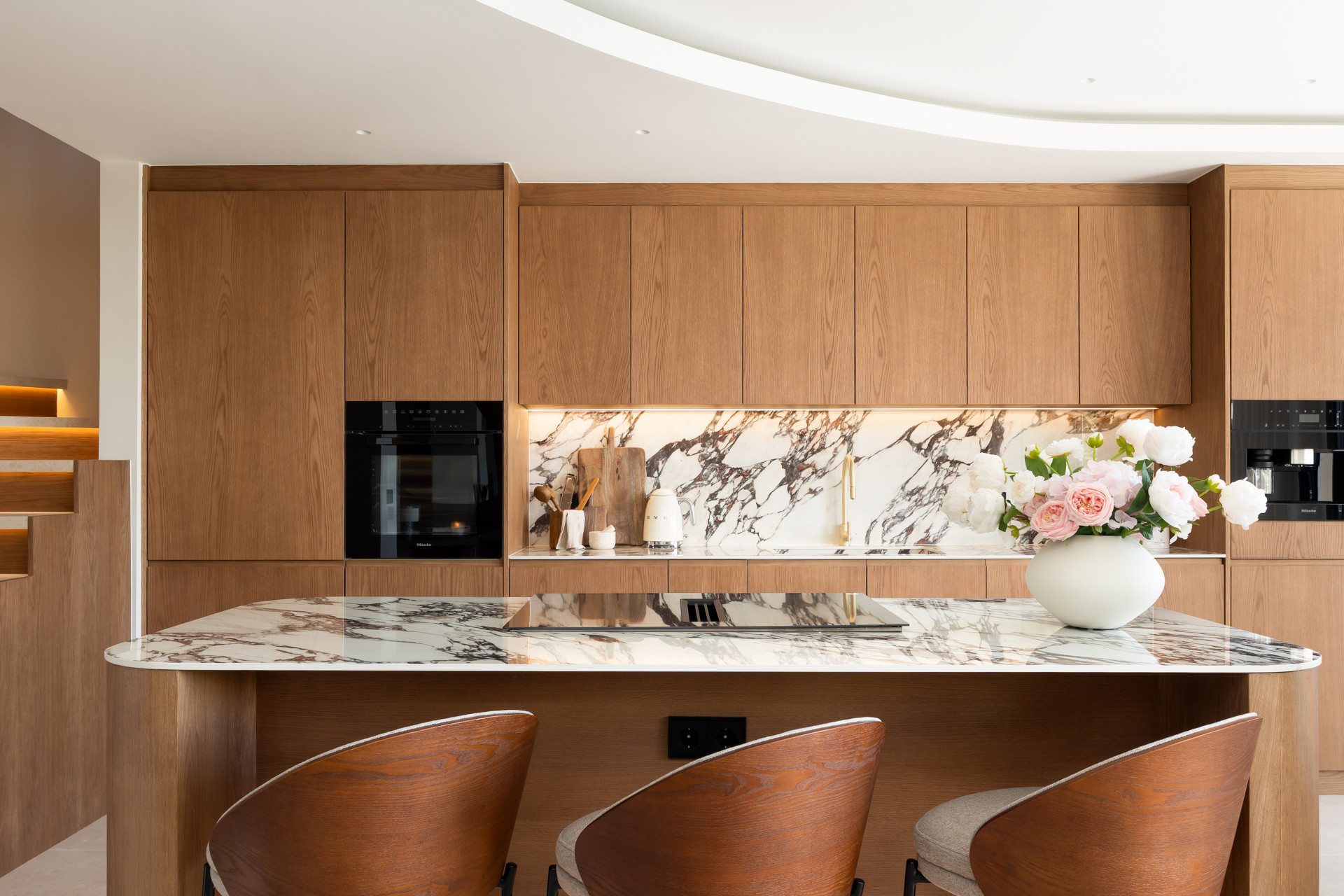 The gourmet kitchen is equipped with premium Miele and Siemens appliances, while a dedicated laundry area ensures every practicality is catered for. Underfloor heating runs through all bathrooms and the kitchen and dining area, keeping the home warm and welcoming year-round.