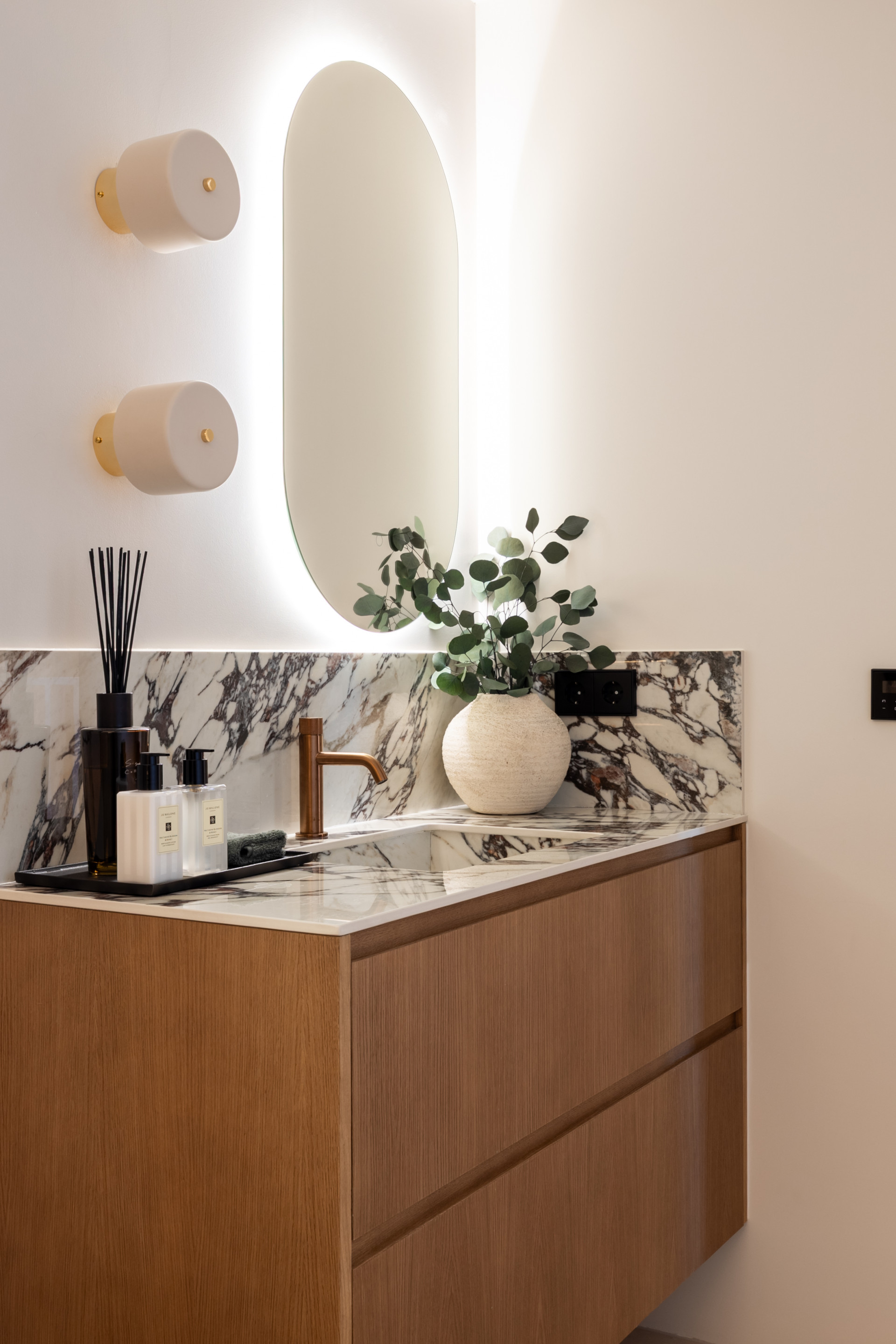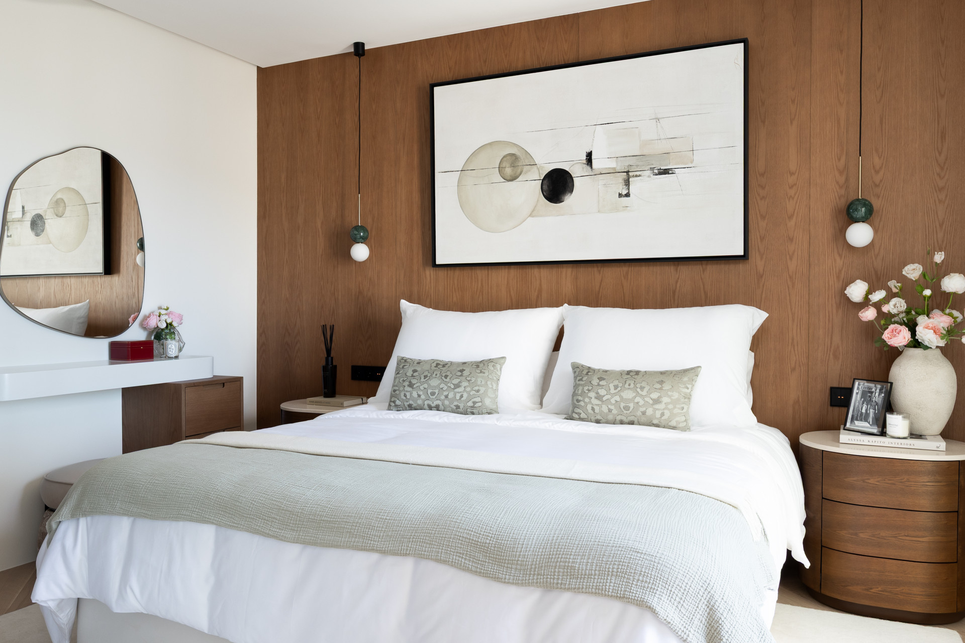 The interiors immediately impress with elegant herringbone wooden floors by renowned Norwegian brand BOEN, complemented throughout by Gunni ceramic tiles that flow seamlessly from indoors to out. Bespoke, custom-made carpentry has been thoughtfully integrated across the entire property, adding a sense of craftsmanship and individuality rarely found at this level.