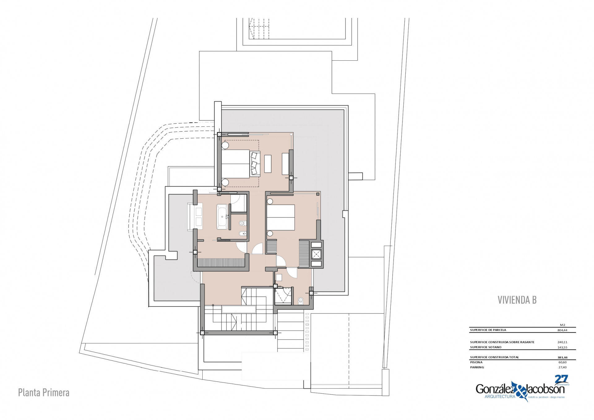Built over three levels and enjoying a sunny south-east orientation, the villa offers a stylish open-plan living and dining space, a high-end German kitchen, and seamless access to a private garden and swimming pool.