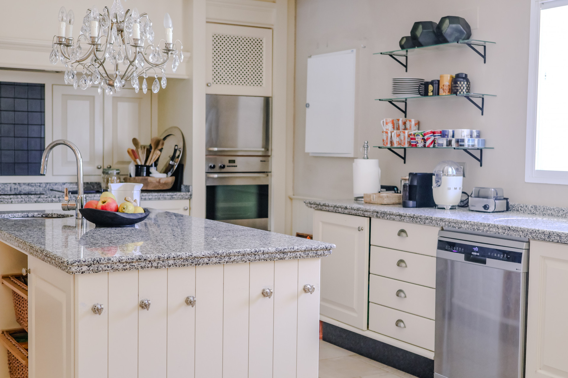 The villa’s heart is its stunning open kitchen and dining area. Designed for both everyday comfort and entertaining, it features elegant stone countertops, a spacious central island, and seamless flow to the outdoor terraces. It’s easy to imagine slow mornings with coffee in the sun or long evenings with friends as the Mediterranean breeze drifts through the open doors.