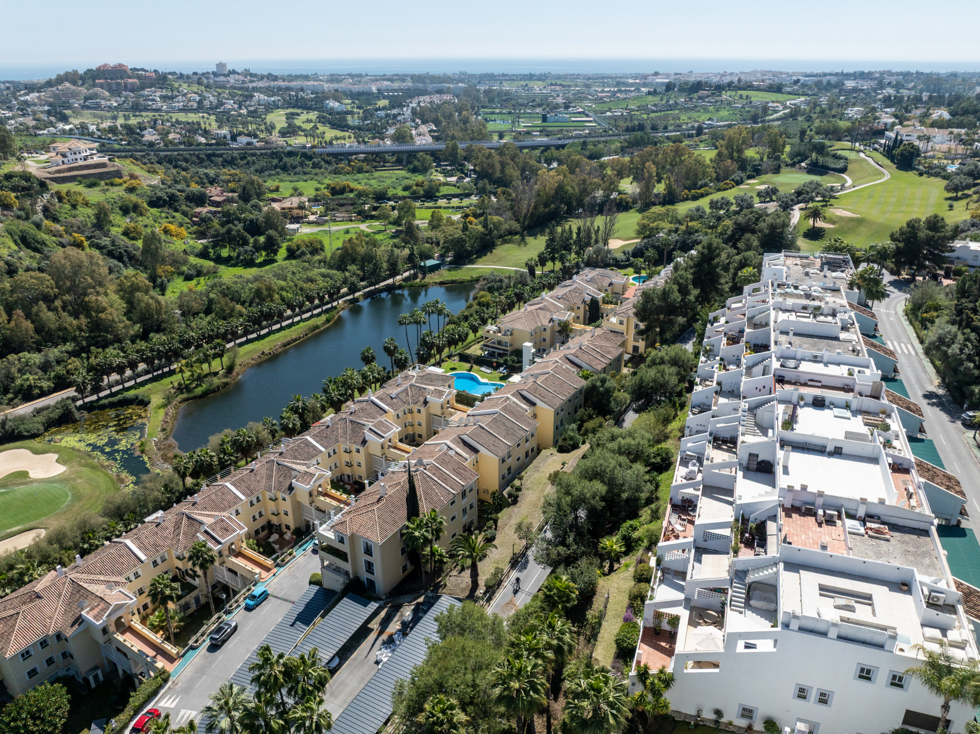 Set on the middle floor, the apartment comprises two generously sized bedrooms and two stylish bathrooms. From this elevated position, residents can enjoy sweeping views of the Mediterranean Sea, the rolling fairways of the nearby golf course, and the surrounding mountains, creating an atmosphere of space, light, and tranquillity.