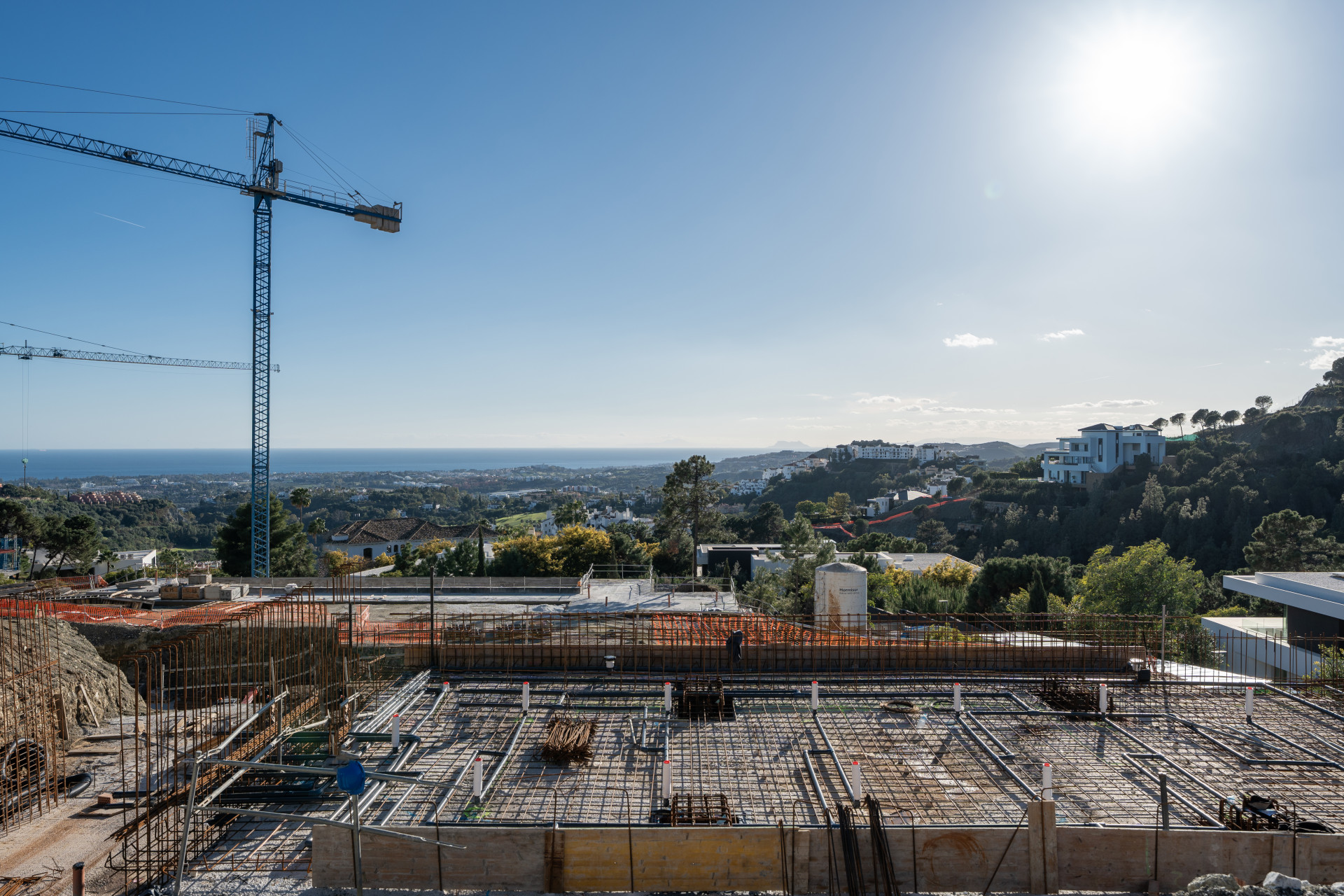 Spanning three levels, Villa Forest Edge has a total built area of 1.084 m² and is situated on a spacious plot of 3,082 m². The villa is filled with natural light, thanks to its large panoramic windows that offer stunning views of the Mediterranean Sea, surrounding hills and mountains, and even the distant African coastline. With a slight southwest orientation, the villa enjoys sunlight throughout the day and provides breathtaking sunset views, including glimpses of Gibraltar from both the ground and first floors.