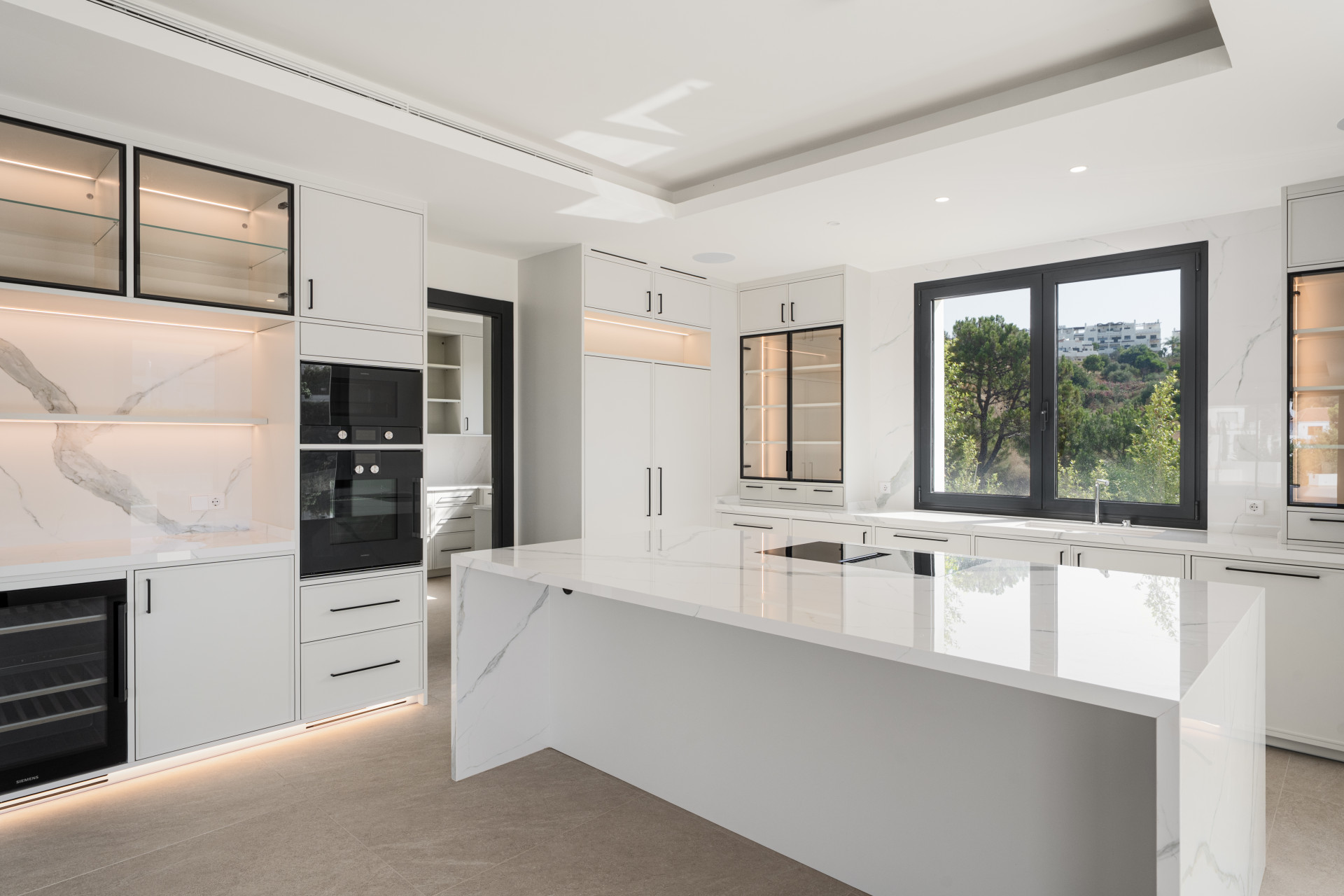For those who prioritise convenience and security, the villa offers a wealth of state-of-the-art amenities. A private carport ensures secure parking, while security features include an alarm system, surveillance cameras, a security entrance, and an armoured door for complete peace of mind. Double glazing and porcelain floors throughout add to the villa’s contemporary appeal.