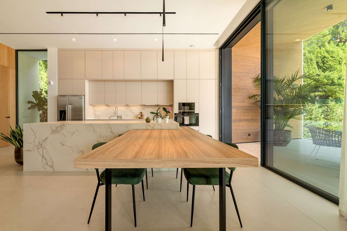 This contemporary 6-bedroom villa is located on a private plot of over 1,600 m² in the prestigious Guadalmina Alta area of Marbella.