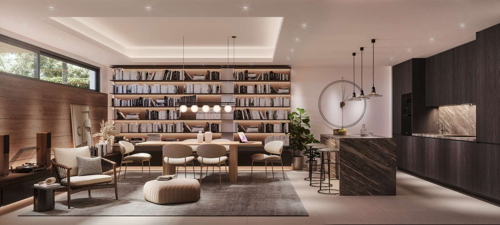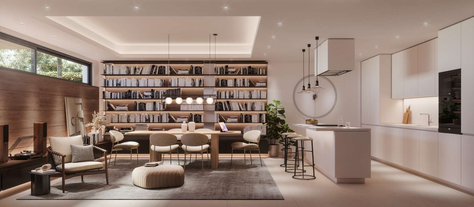 The architectural concept centres around a luxurious open-plan living environment designed to enhance both daily comfort and entertaining.