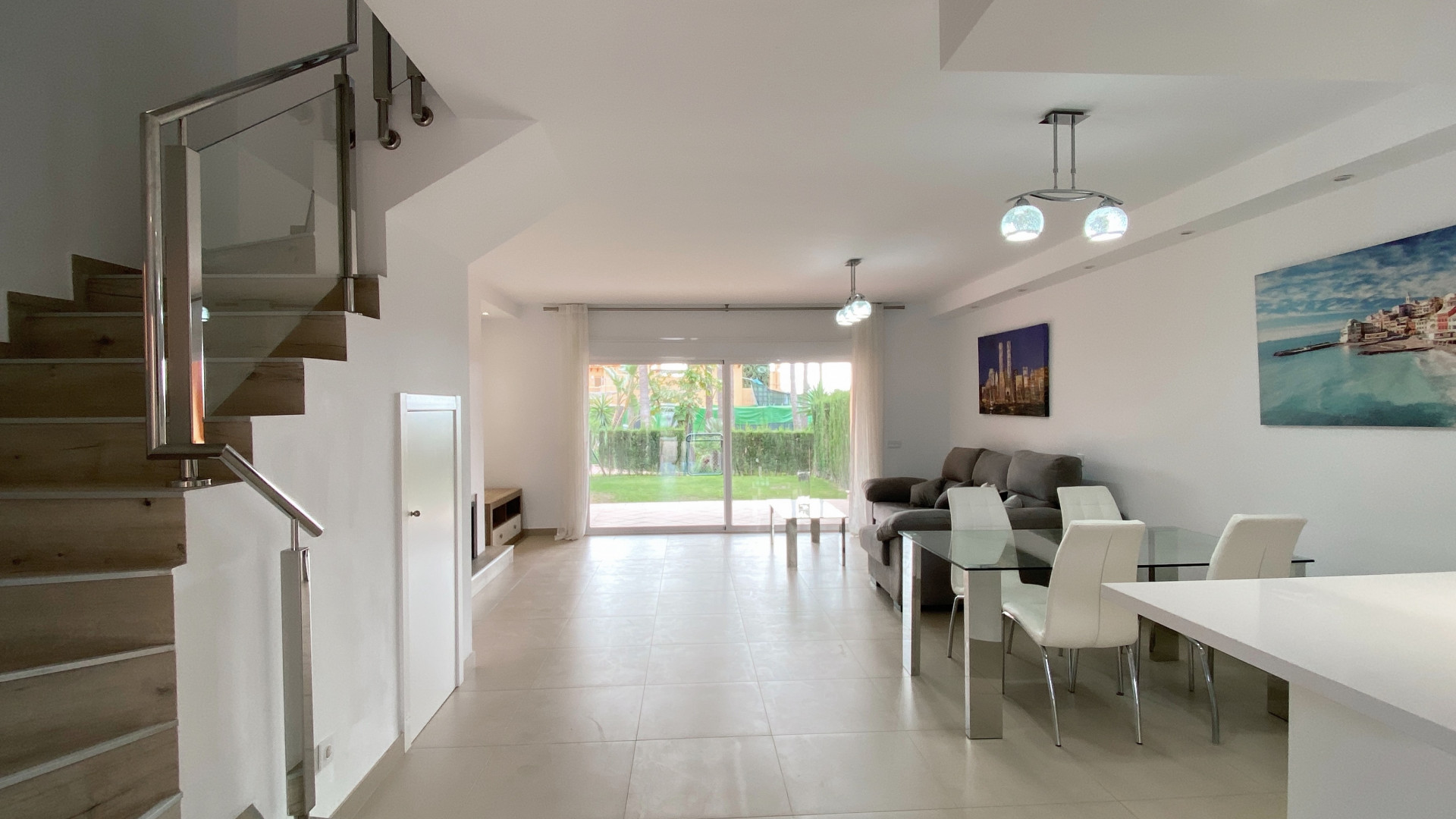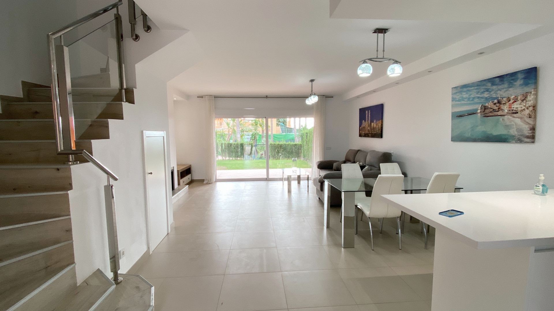 Other notable features of this luxury town house include air conditioning, solarium, electric blinds, and an advanced home automation system. Additional amenities include a communal pool and a private garden, where you can enjoy the Mediterranean climate and soak up the sun.