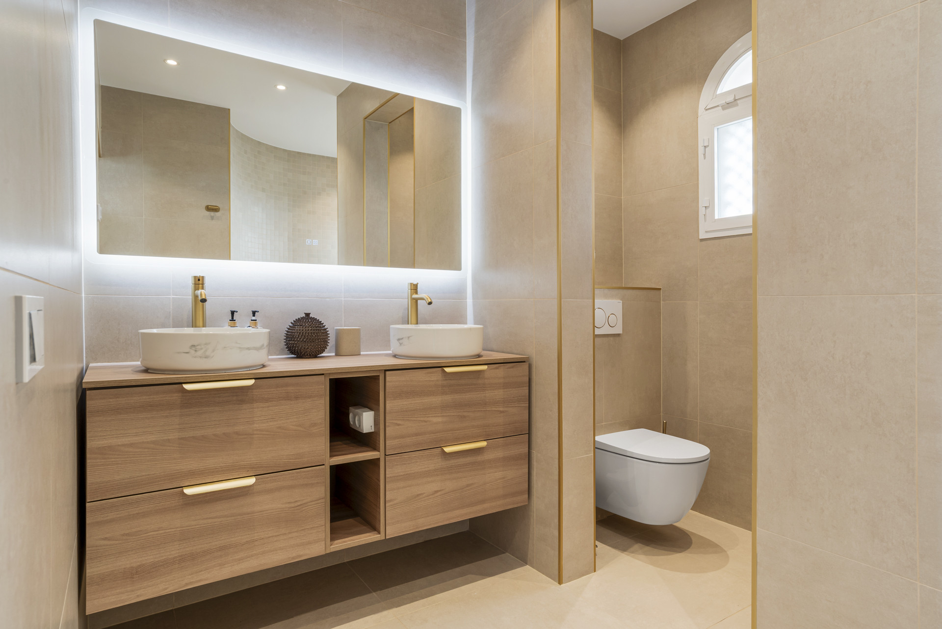 The upper level houses an additional bedroom and bathroom, alongside a convenient laundry room. This level opens up to a magnificent private terrace, where a private pool and barbecue area await, perfect for hosting gatherings or enjoying tranquil sunbathing sessions. The terrace offers breathtaking panoramic views of the sea and mountains, providing a serene backdrop to everyday life.