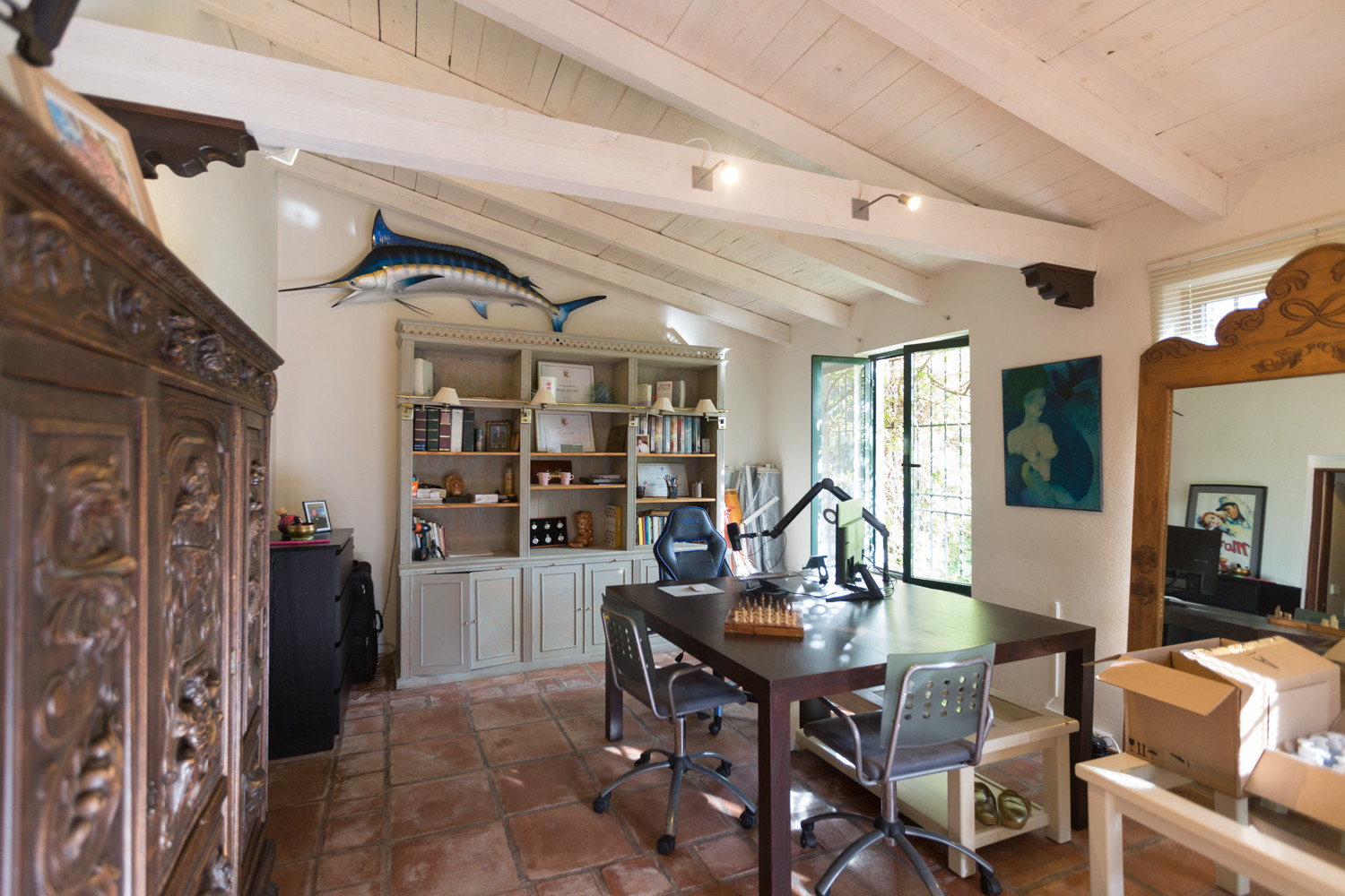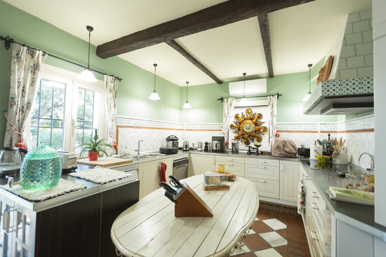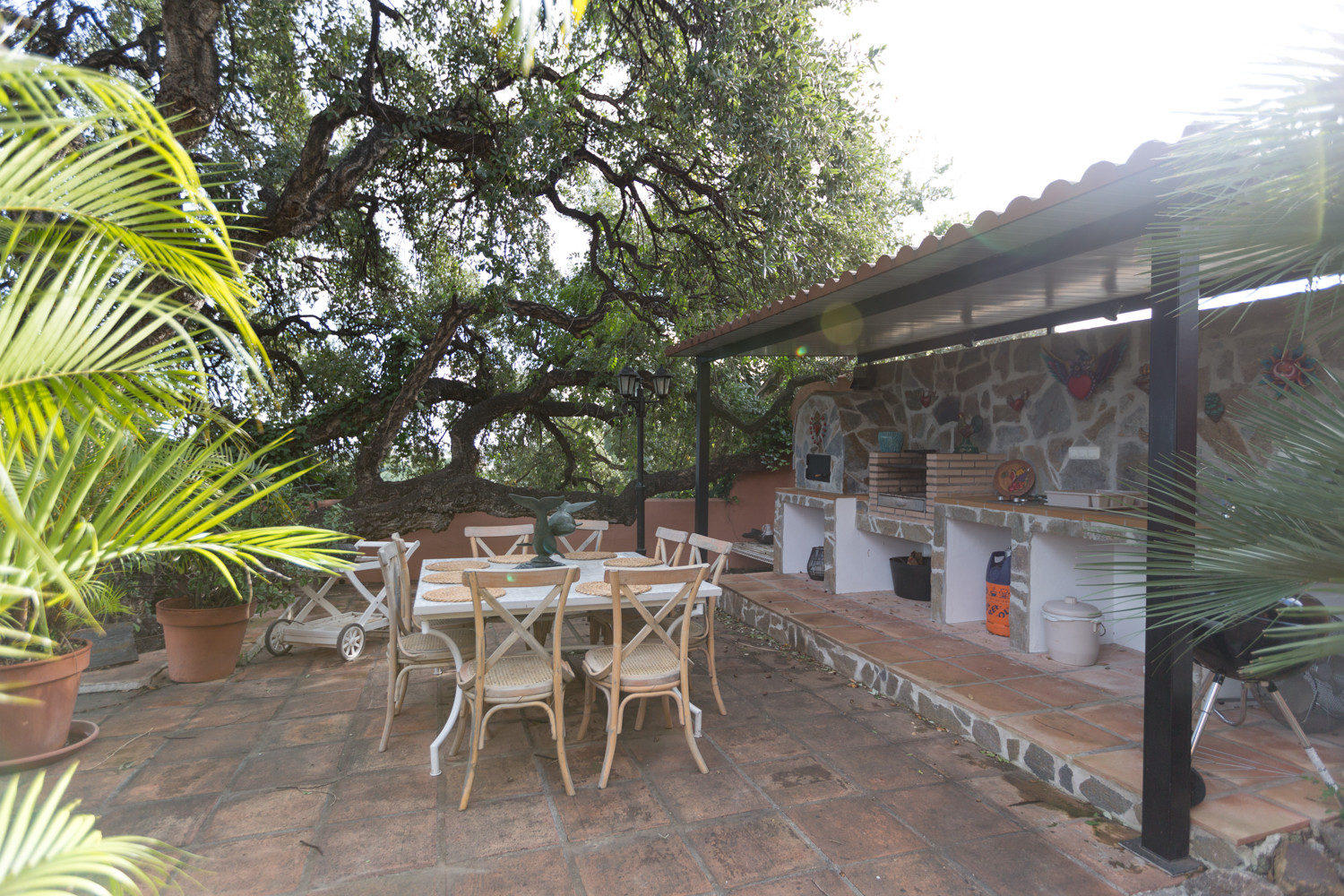 Inside, the house is fully furnished and ready to move in. It has air conditioning, gasoil heating, fireplace, fitted wardrobes, separate guest apartment and a fully equipped kitchen.