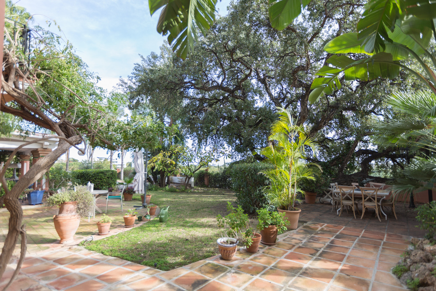 The villa has a beautiful garden with trees, plants and lawns, equipped with automatic irrigation, and a large outdoor space where you will find swimming pool, jacuzzi, barbecue and several private terraces, including an uncovered terrace to enjoy the climate and partial sea views.