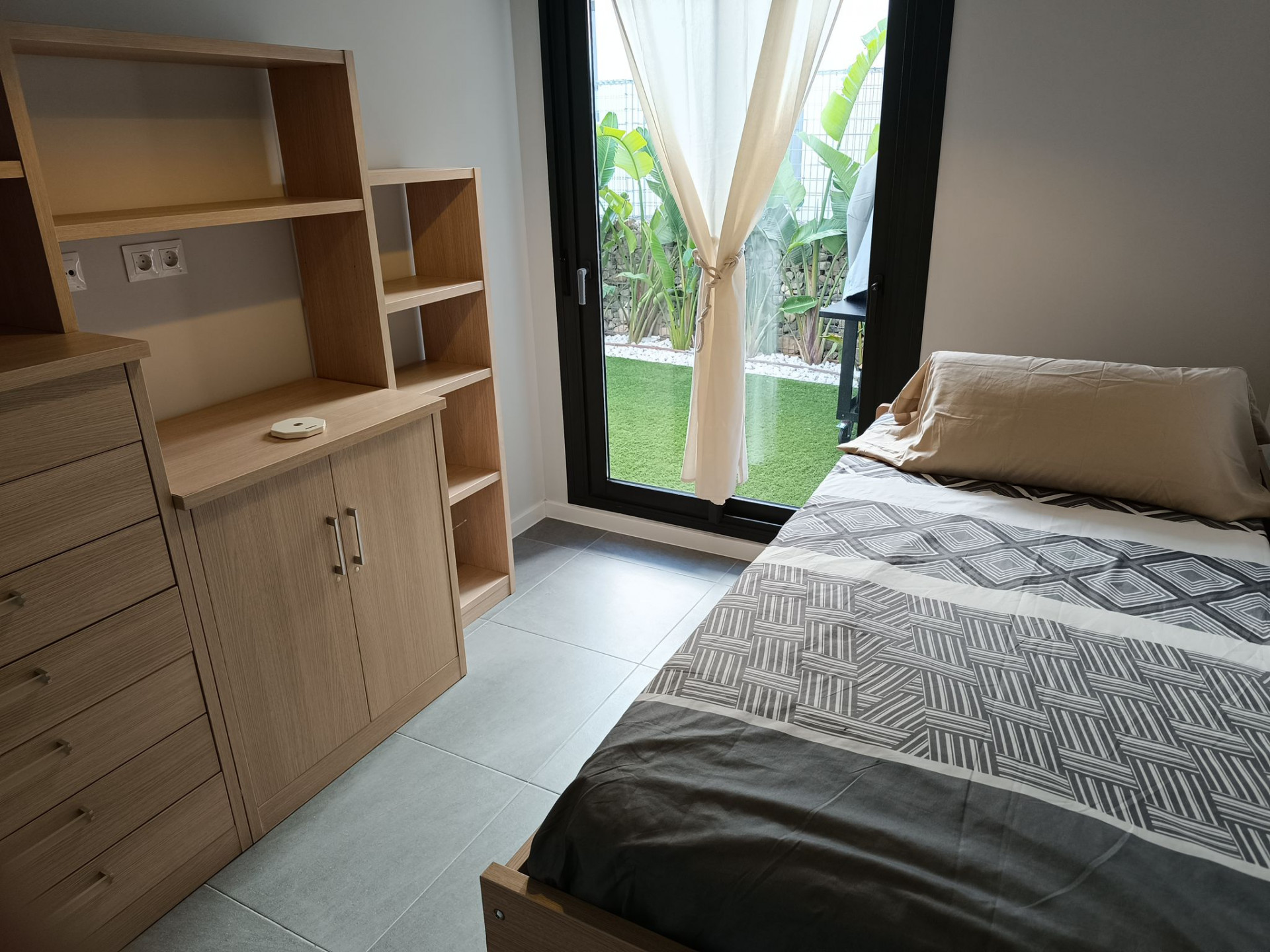 The lower level is designed for rest and relaxation and includes three spacious bedrooms and two beautifully finished bathrooms, including a master bedroom with an en-suite bathroom. Each bedroom has direct access to a spacious private garden of 190 m², creating a harmonious blend of indoor and outdoor space and allowing natural light to flood the space. The master bedroom even has partial sea views, adding to the luxury.