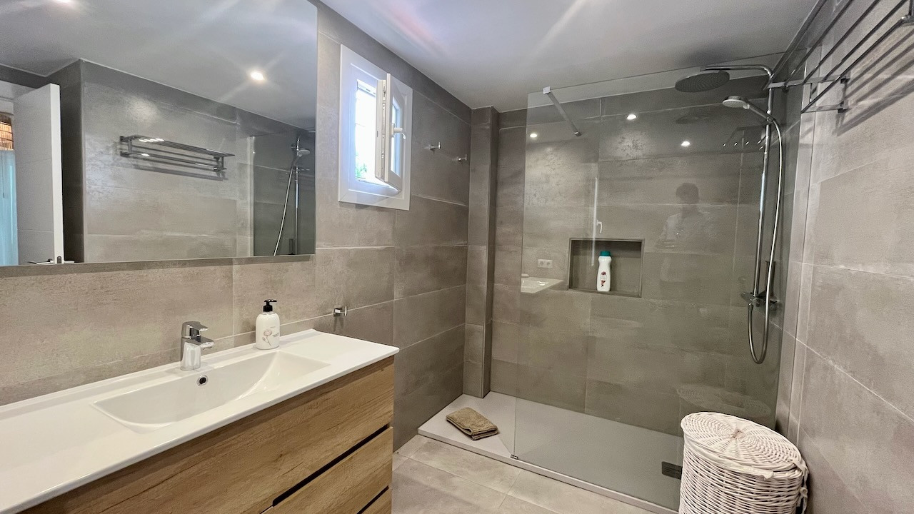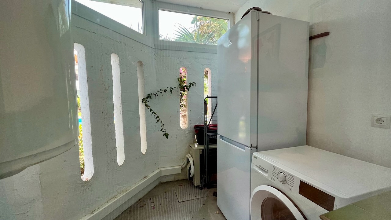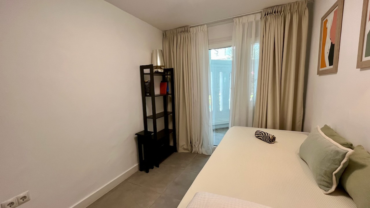 This is a ground floor apartment available for rent in Los Naranjos de Marbella, Marbella. It has three bedrooms and two bathrooms. The apartment faces the south/east direction, which means it gets plenty of sunlight.